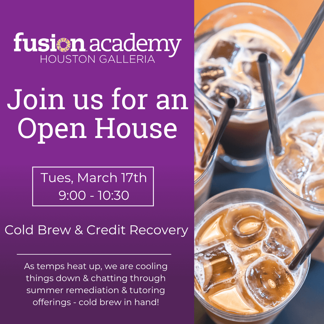 As summer approaches and the heat starts to rise, we’re cooling things down with some refreshing cold brew and a lively conversation about all things Summer at Fusion Academy Houston Galleria! With your iced coffee in hand, join us for a relaxed, come-and-go open house where we’ll share what’s coming up, explore exciting summer opportunities, and connect with our community.
